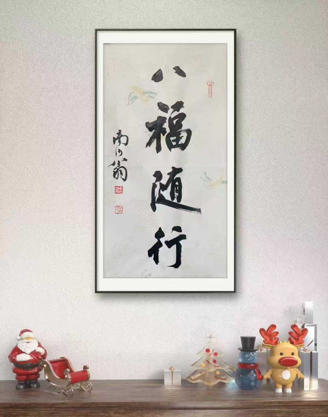 Ba Fu Sui Xing expresses a wish for prosperity, harmony, and good fortune to accompany one’s path.